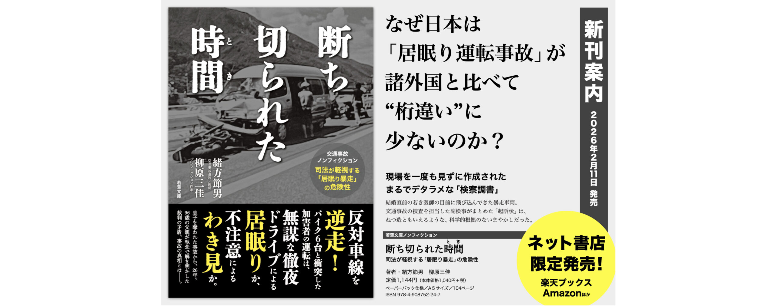 - 【新刊案内】『断ち切られた時間 —— 司法が軽視する「居眠り暴走」の危険性(若葉文庫ノンフィクション)』の予約受付がスタートしました!